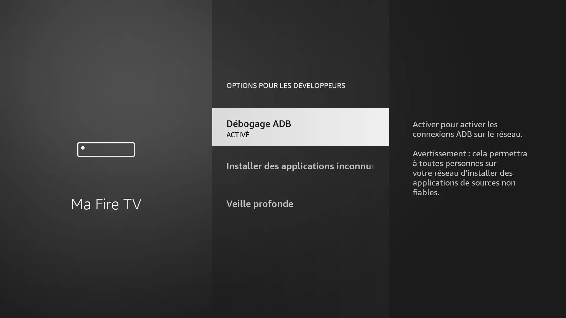 - Sélectionnez Ma Fire TV > Options pour les développeurs.